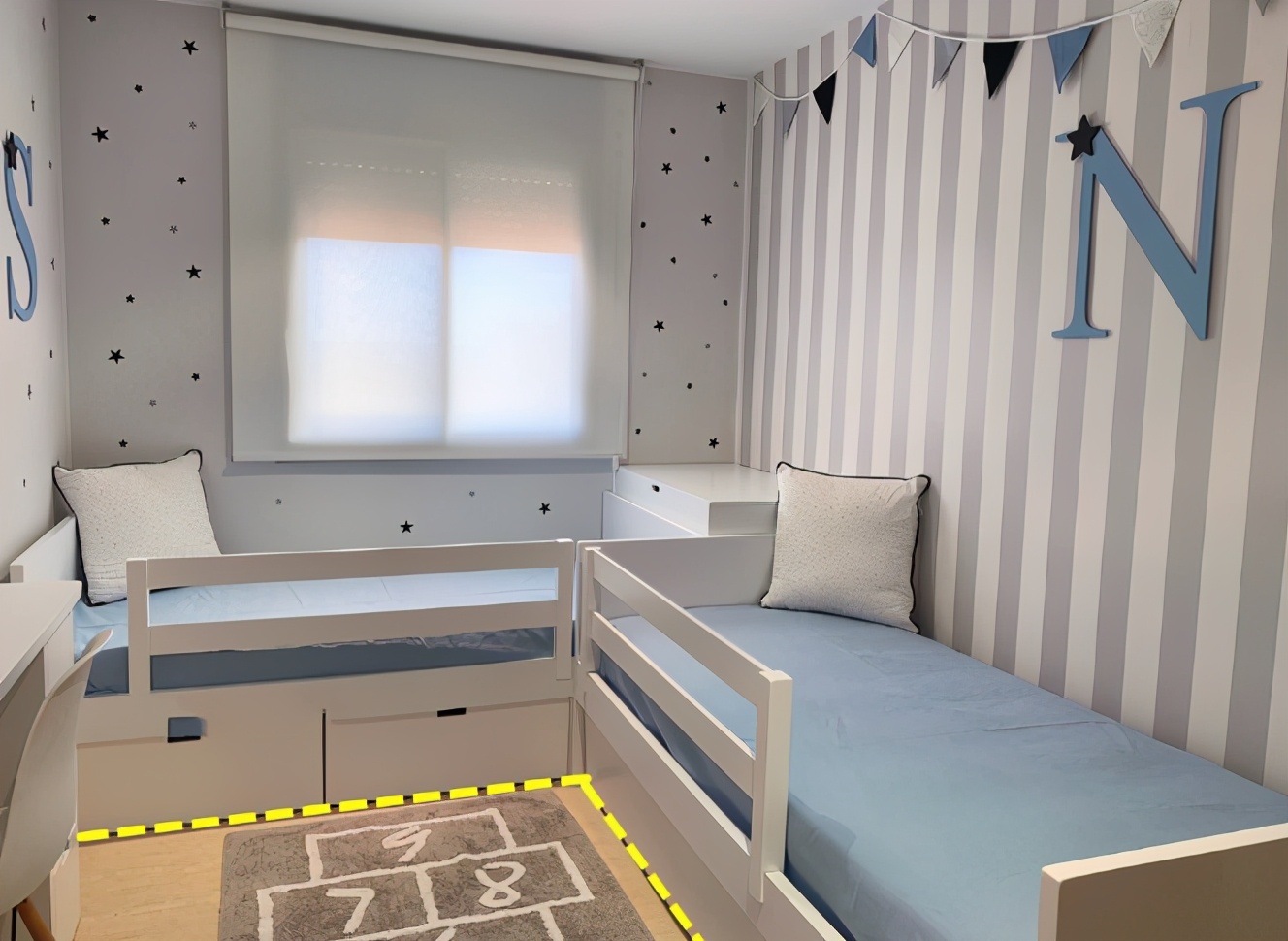 一間房睡兩個孩子怎么裝修"折線分"法讓倆娃都有私密空間